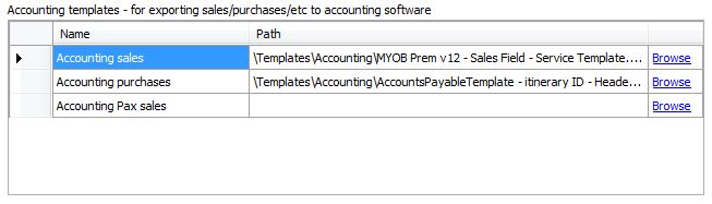 Use the Accounting templates area to load your export templates. In order to perform the accounting export in Travelmesh you will need a set of export templates for both purchases and sales (see downloads provided below).