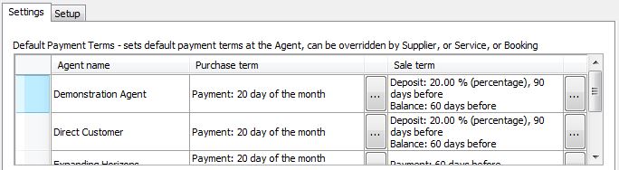 This is the standard payment terms offered to your clients. These can not be overridden at the Itinerary level.
