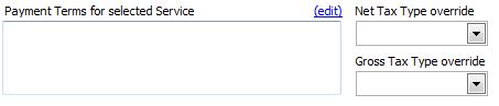 Again, click the (edit) button. You can enter the payment term for this specific Service, and click on the tax type override to override the tax type for this specific Service.