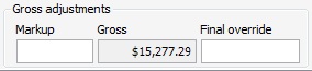 The Net(final) and Gross(final) prices shown above are your Grand Summaries figures. These are your default totals that can then be changed by either adjusting the Markup percentage or the Commission percentage in the fields below in order to get your Final Sell Price. If you do not wish to make any Markup of Commission adjustments the totals shown in the Grand Summaries field will be your Final Sell Price.