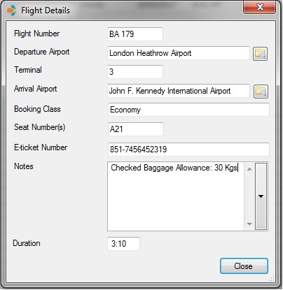 New Flight Details feature allows you to store flight information in dedicated fields. To access flight information in an itinerary, right-click a Booking Item and choose Flight Details. This will open a Flight Details window that allows you to enter flight information for a booking item.