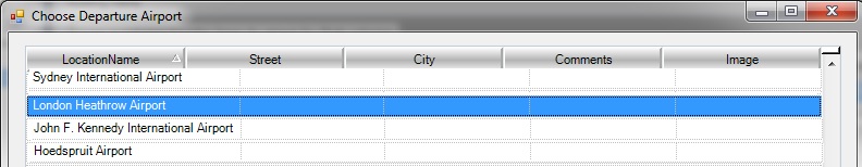 Departure Airport: Information here can be pulled from the Booking Location Chooser popup window. This window provides a list of all the Pick up and Drop off locations entered at Supplier level through a Location Card. To enter an Airport Location to the existing list of Locations, double-click a booking item, go to the Details tab, and click the