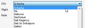 To search for a city in the drop-down list, select the City drop-down list. Type the first couple of letters of your city or airport name on your keyboard. E.g. Type Si and the first City in your list that starts with these letters will be highlighted in the list.