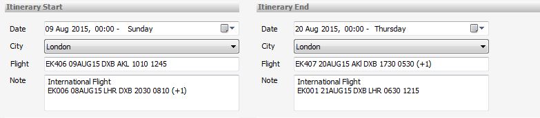 Example: If you would like to end your Final Itinerary document with a sentence “Fly to Sydney via Auckland on flight NZ1234”. This can be added to the Itinerary End Note field, and coded to display as the last item on your Final Itinerary document.