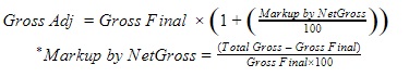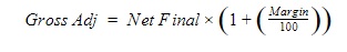1. The Markup can also be calculated off the Net Final value. Say in the scenario above; the Net final value is 80, the Gross Adj value is calculated as: