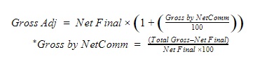 1. The Commission is only calculated off the Net value. If we adjust the Commission to be Exactly 10%, the Gross Adj value can be calculated as: