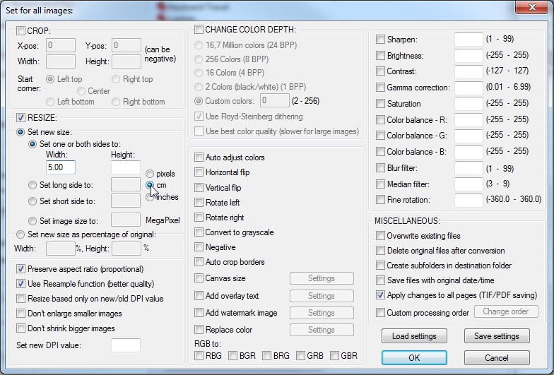 - On the Advanced options window go to the Resize section and chose the appropriate resize option eg 5 cm and then click OK