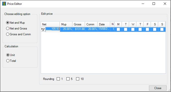 - Choose your editing option from Net and Mup, Net and Gross or Gross and Comm.