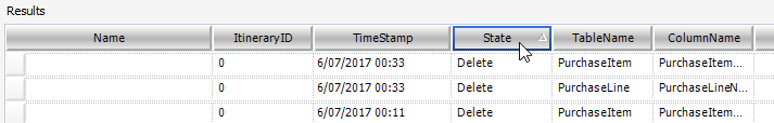 By default, the Audit results are ordered in ascending order by the ‘TimeStamp’ field- this is a good display option, however if you wish to order by an alternative field, such as ‘State’ (for example), click on that field header. A triangle appears on the far right of the field header – this indicates the Audit results are now ordered by ‘State’, in ascending order. If the field header is clicked again, the triangle becomes inverted which means the field is now displaying in descending order. Note that multiple fields can be ordered simultaneously by holding down the ‘Shift’ key and clicking on additional field/fields.